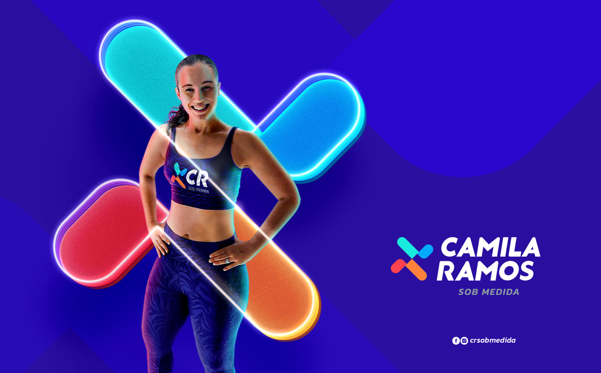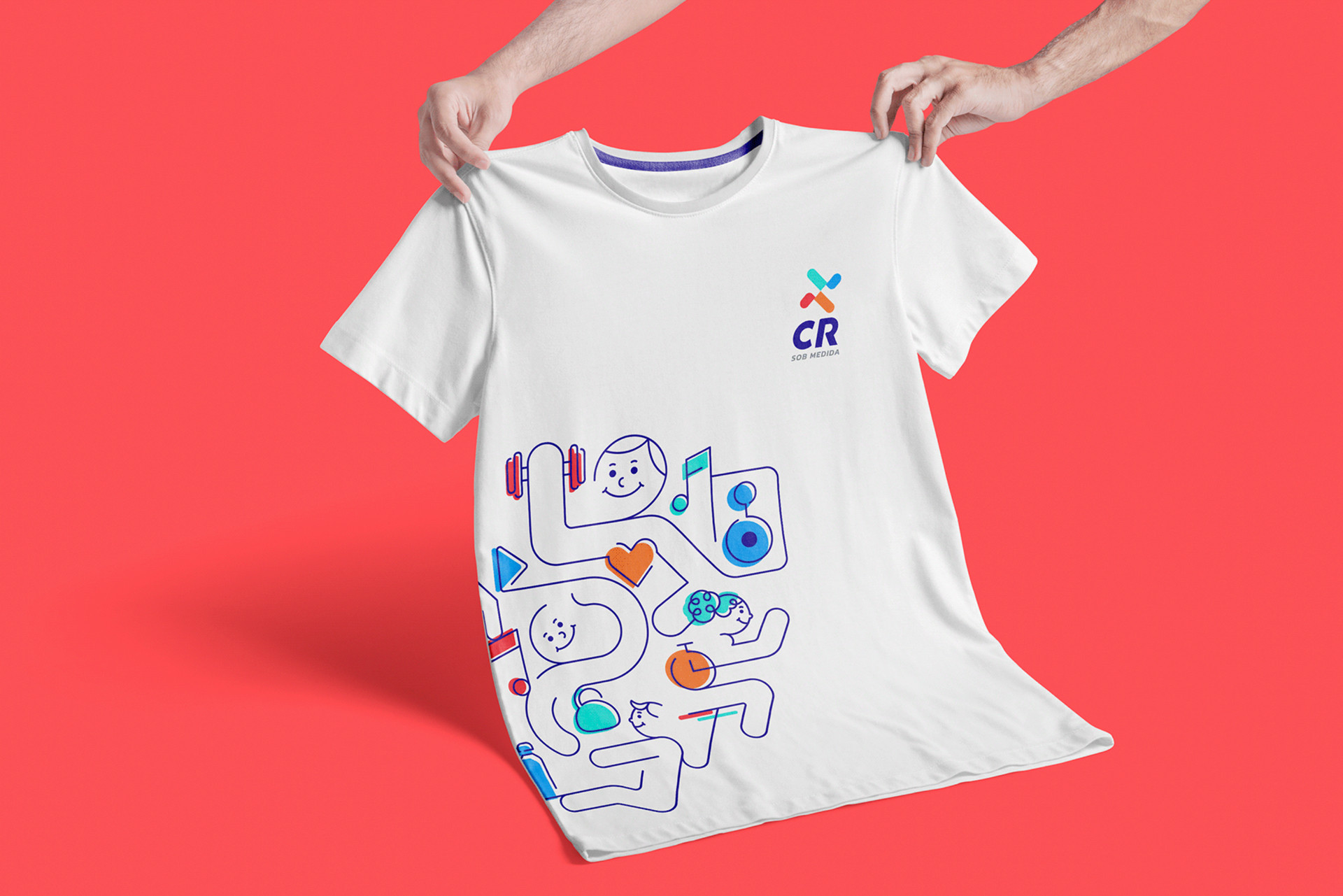 Qualidade de vida através de treinos personalizados e acompanhamento. Para criar a identidade visual @crsobmedida utilizamos conceitos como movimento, facilidade e alegria através dos núcleos vibrantes e um símbolo que transmite o movimento. Para o projeto foram ilustrados e emojis personalizados para utilização em materiais complementares e redes sociais.